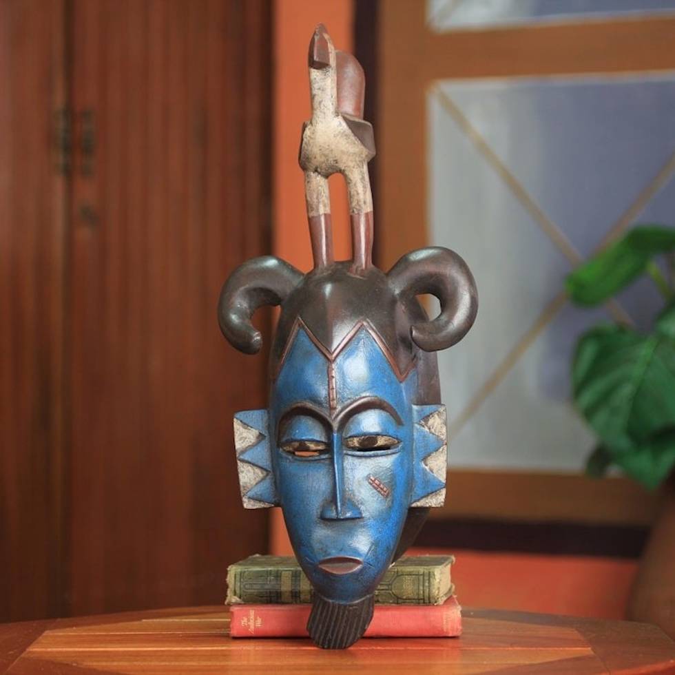 Blue African Mask with Bird 'Guro Rooster' Item ID: 2671806994