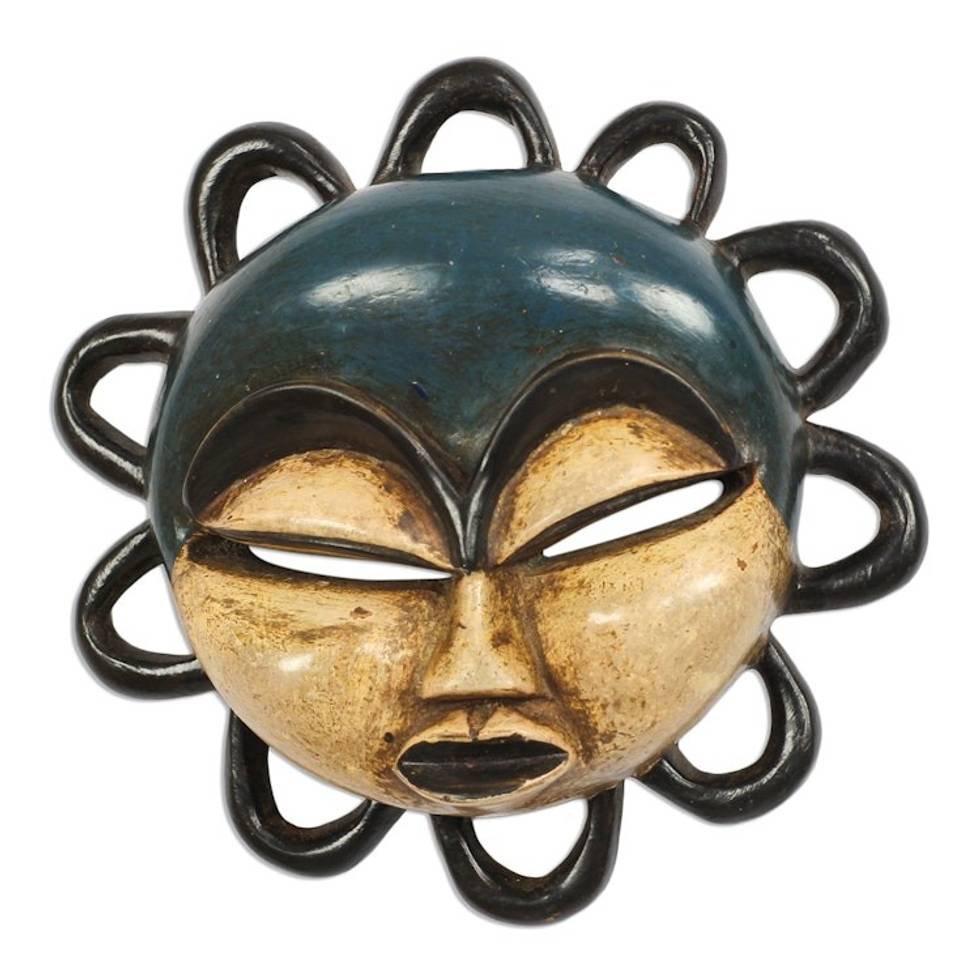 Blue and Beige African Wood Mask from Ghana 'Fafali Face' Item ID: 2671806431