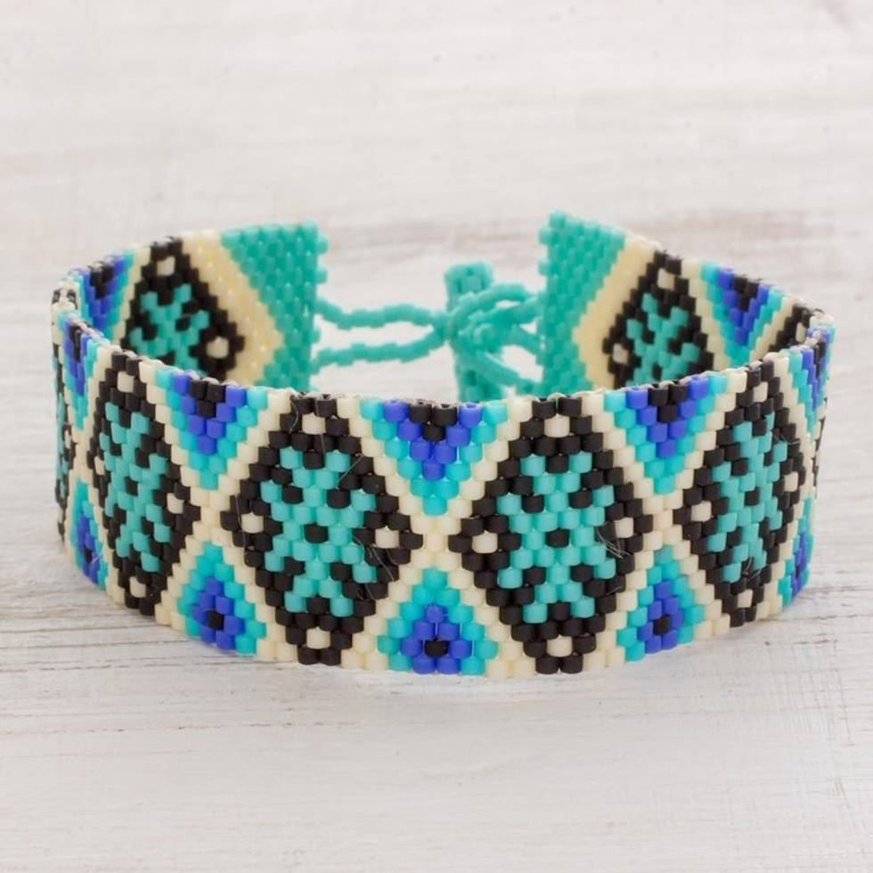 Blue and Black Geometric Beaded Wristband Bracelet 'Sea Stars' Item ID: 2671780099