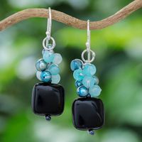 Blue and Black Multi-Gemstone Dangle Earrings from Thailand 'Blue Courage' Item ID: 2671797745