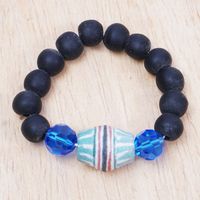 Blue and Black Recycled Glass Beaded Stretch Bracelet 'Electric Soul' Item ID: 2671805234