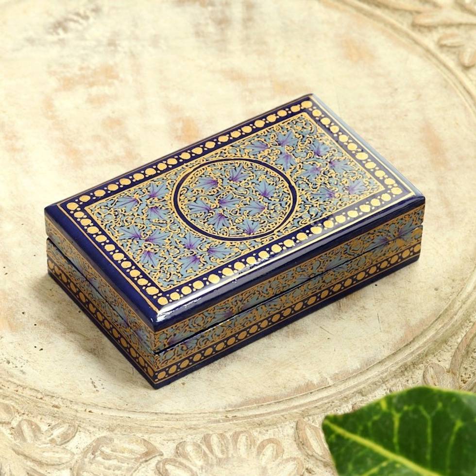 Blue and Gold Velvet-Lined Decorative Box 'Kashmir Tradition' Item ID: 2671624044