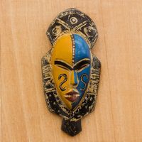 Blue and Orange Wood African Mask from Ghana 'Dual Thandi' Item ID: 2671806138
