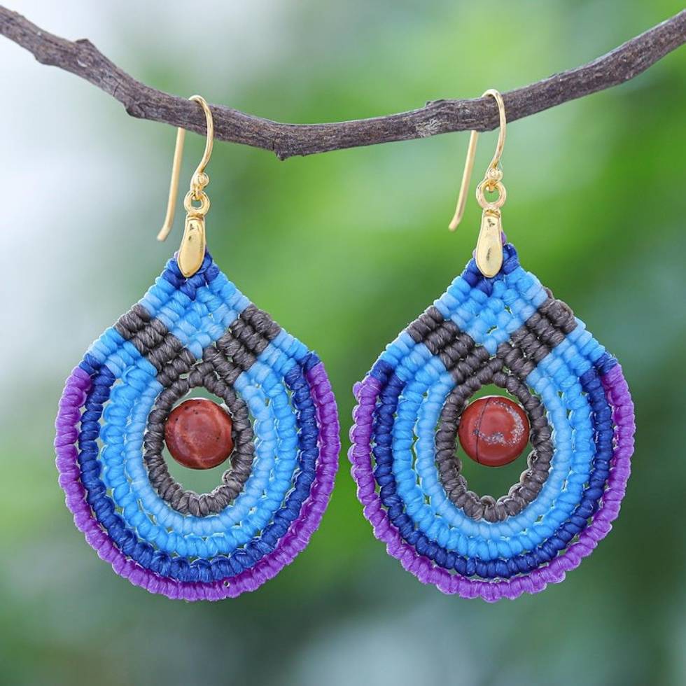 Blue and Purple Macrame Dangle Earrings with Jasper 'Refracted Raindrop' Item ID: 2669930924