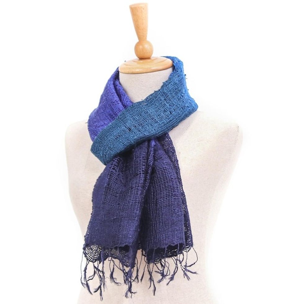 Blue and Purple Tie Dye Thai Silk Scarf 'Blues Evolution' Item ID: 2671803041