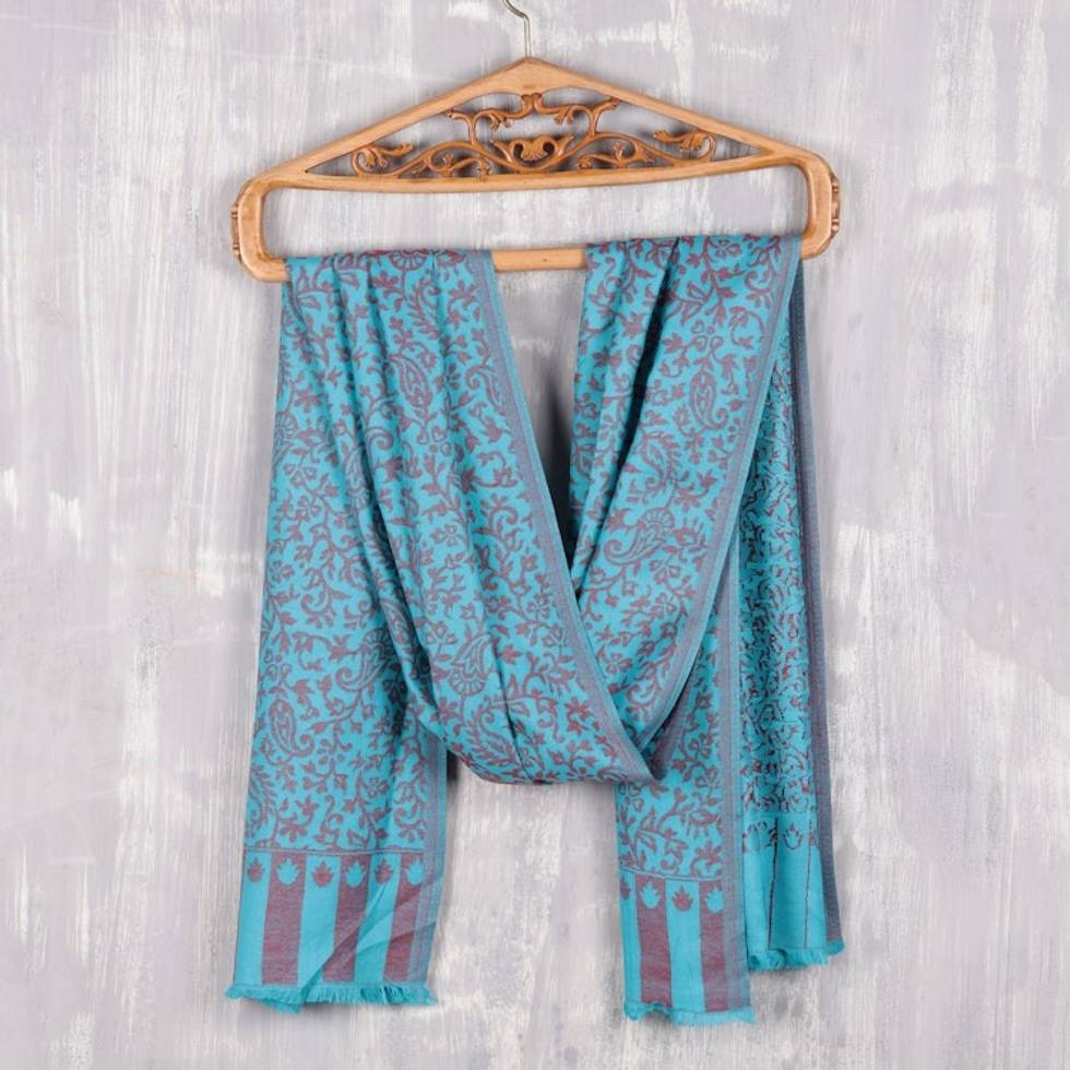 Blue and Red Jacquard Woven Shawl from India 'Paisley Fanfare in Cardinal' Item ID: 2669892347