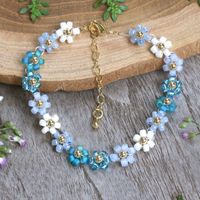 Blue and Turquoise Crystal Beaded Bracelet with Gold Accents 'Moonlight Petals' Item ID: 2671582905