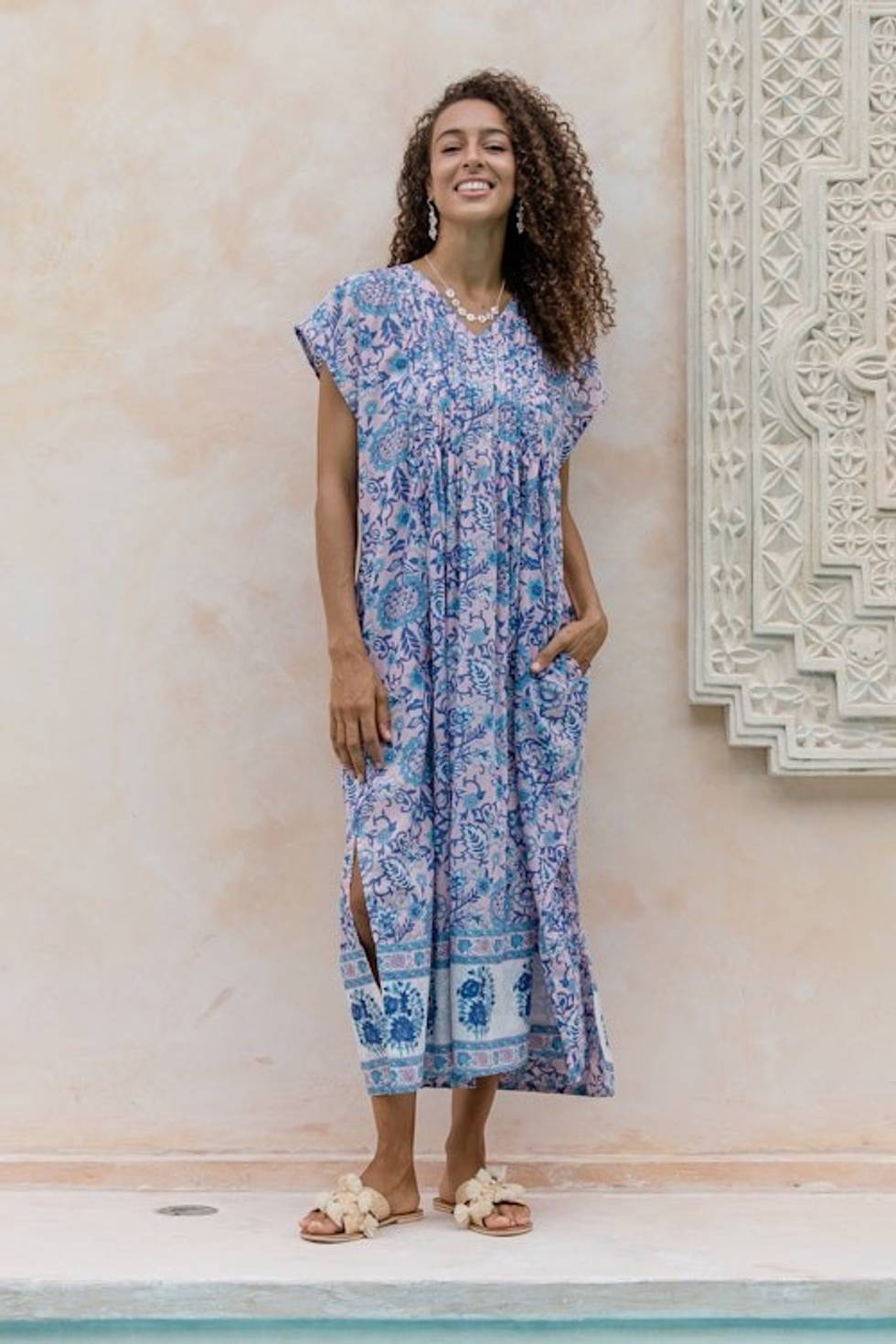 Lovely dress, great length for wearing as a tunic or as a dress. Colors are so vibrant, and the cotton is of excellent quality - very happy with purchase!