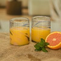 We absolutely LOVE these little gorgeous, handblown juice glasses. Each one is unique although they are clearly a set which gives off a handmade look. We have them out where people can see them. They look like an art piece. i wish they made a little handblown glass tray to put them on which would complete the ""art piece" look.
