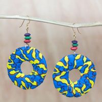Blue and Yellow Cotton Hoop Dangle Earrings from West Africa 'Vibrant Africa' Item ID: 2671803920
