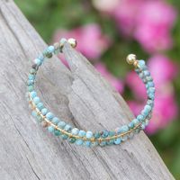 Blue Apatite Beaded Cuff Bracelet in a High Polish Finish 'Life of Sapience' Item ID: 2671797052