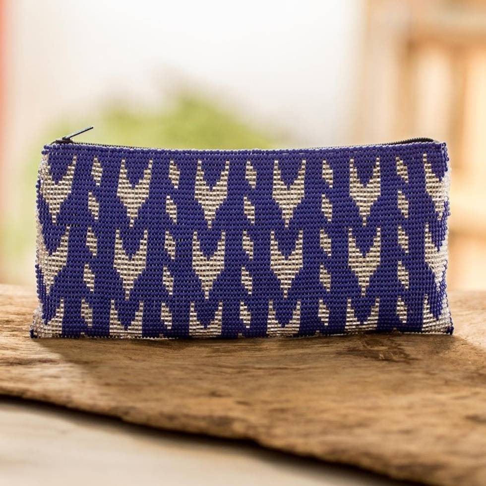 "The Artisans of Panabaj is a community development organization that promotes the empowerment of indigenous women in Santiago Atitlan. They craft this gorgeous cosmetic case by hand, covering it with tiny blue and clear glass beads in chevron patterns. The fully lined bag closes with a zipper."