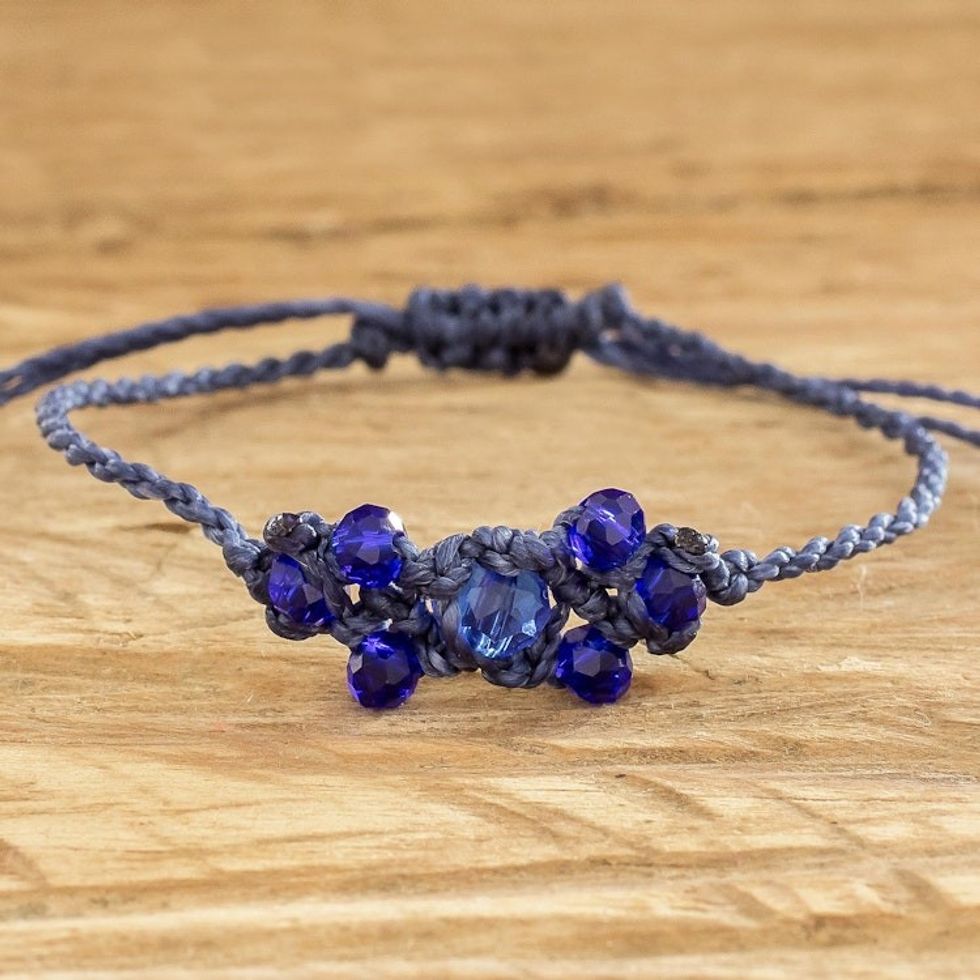Blue Beaded Macrame Bracelet from Guatemala 'Oniric Glow' Item ID: 2669933770
