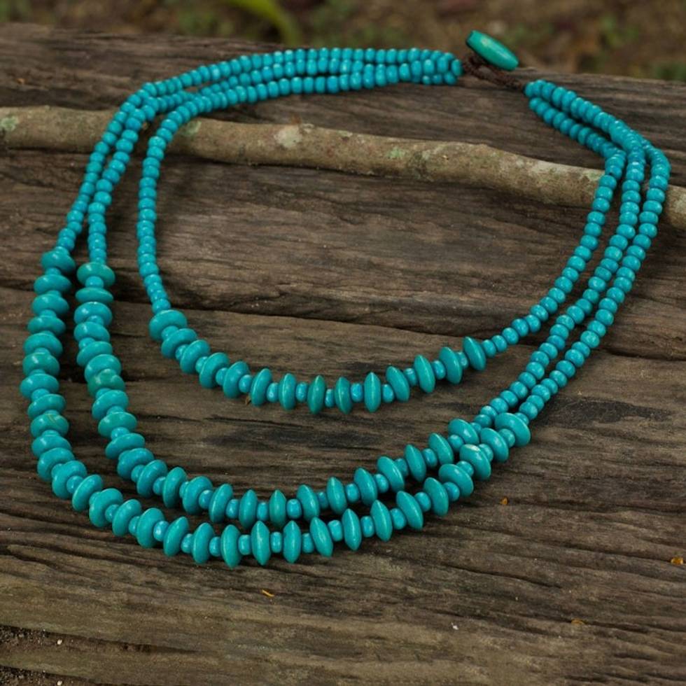 Blue Beaded Wood Waterfall Necklace Artisan Crafted Jewelry 'Happy Blue' Item ID: 2671802005