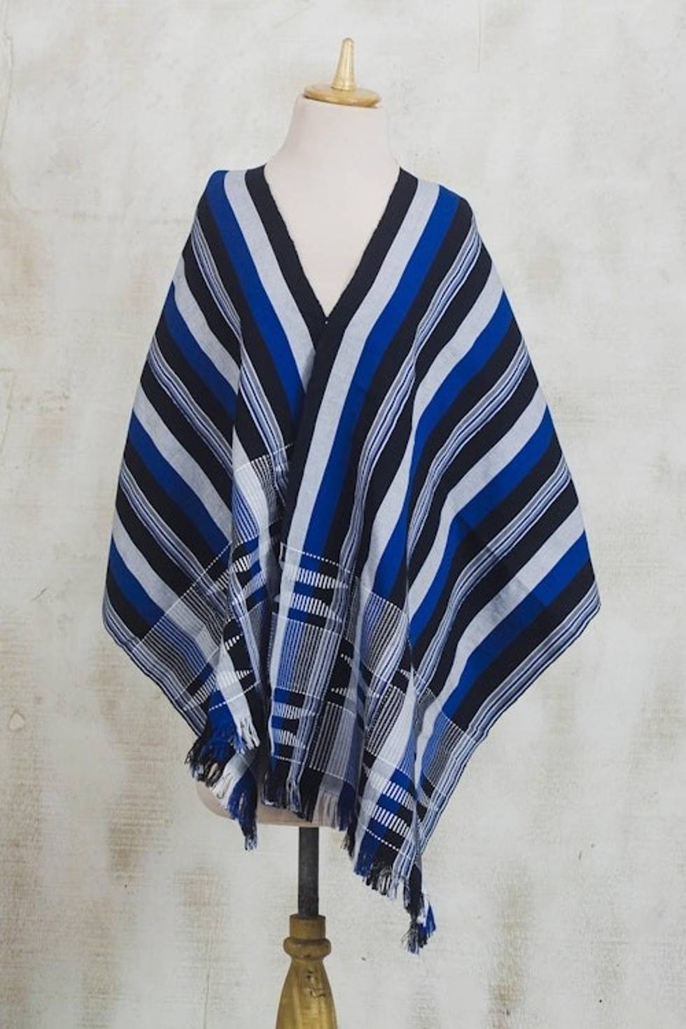 Blue Black and White Hand Woven 100 Cotton Kente Shawl 'Textured Delft Blue' Item ID: 2671803797