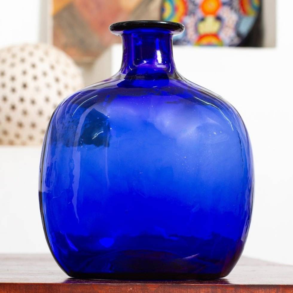 Blue Bottle Shaped Eco Friendly Blown Glass Vase 'Cobalt Blue Bottle' Item ID: 2669932078