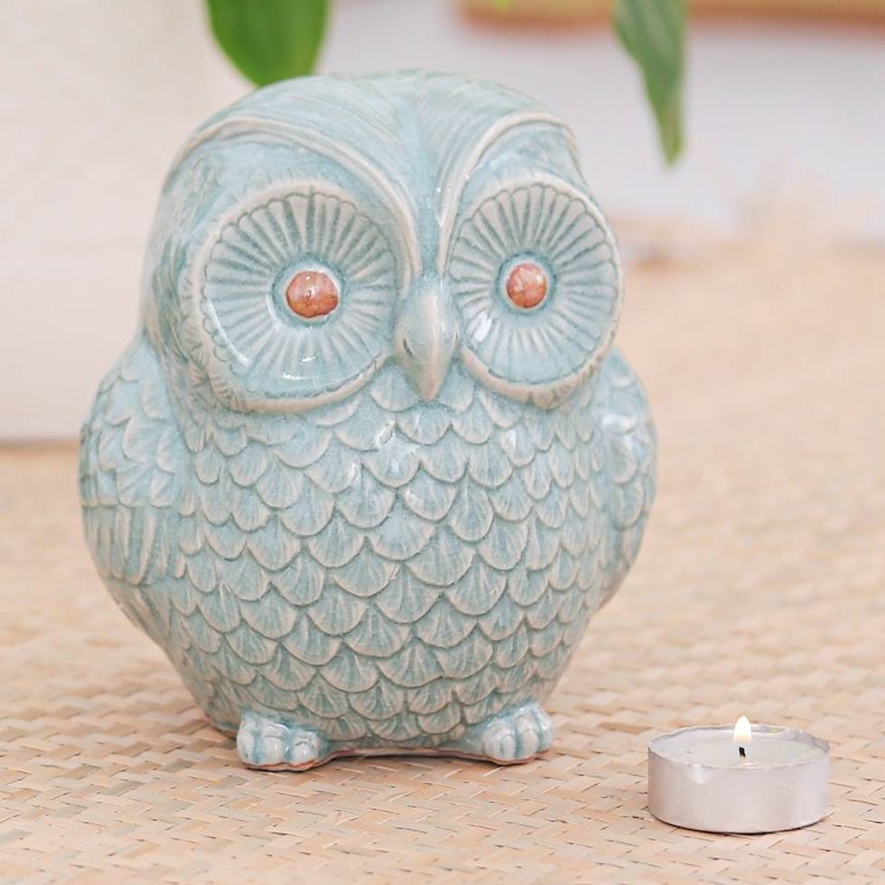 Blue Celadon Ceramic Owl Figurine 'Sweet Blue Owl' Item ID: 2669892532