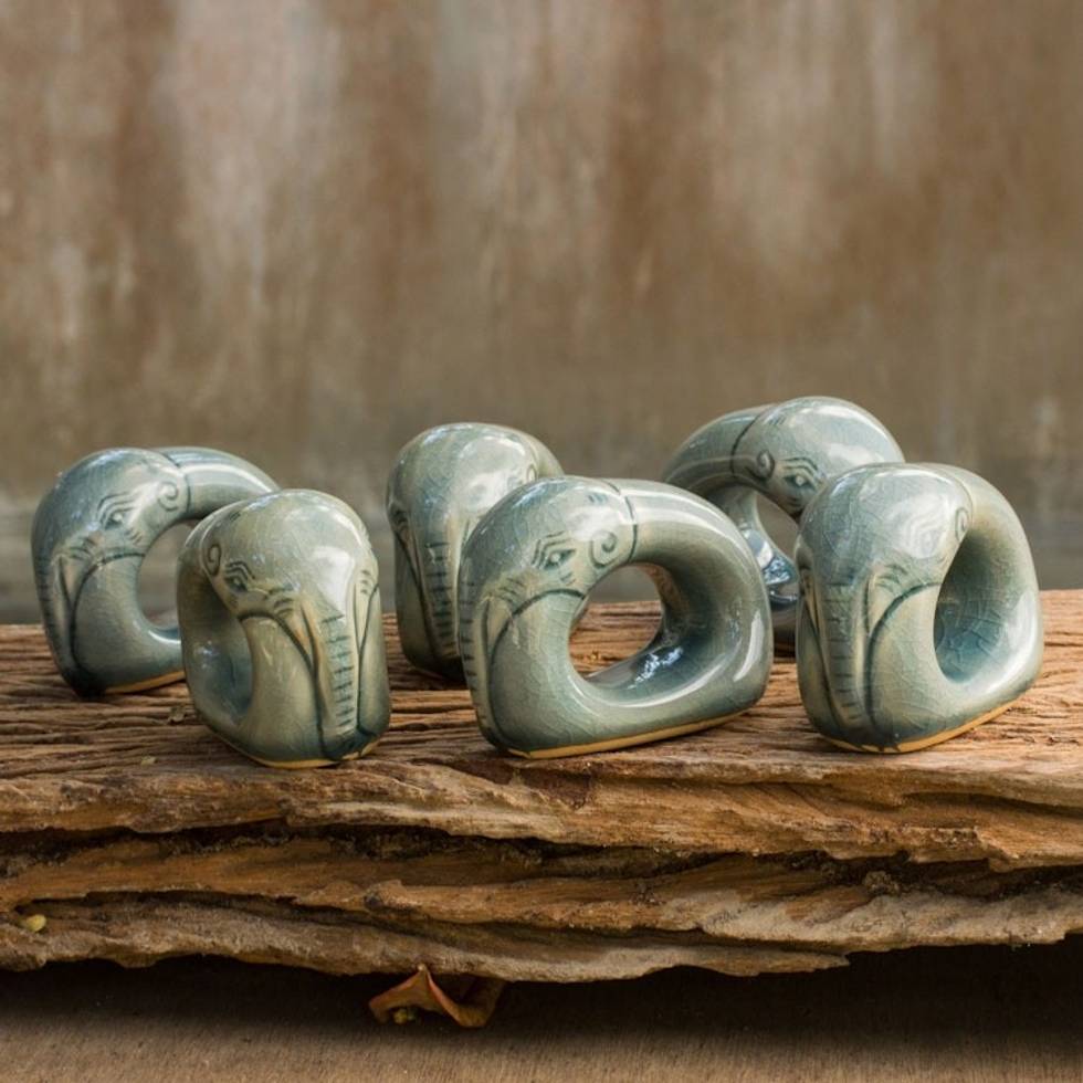 Blue Celadon Elephant Napkin Rings set of 6 'Guardian Elephant' Item ID: 2671802433