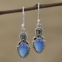 Blue Chalcedony and Sterling Silver Dangle Earrings 'Earthly Crown' Item ID: 2669925476