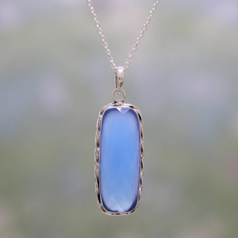 Blue Chalcedony and Sterling Silver Pendant Necklace 'Sea of Blue' Item ID: 2669943735