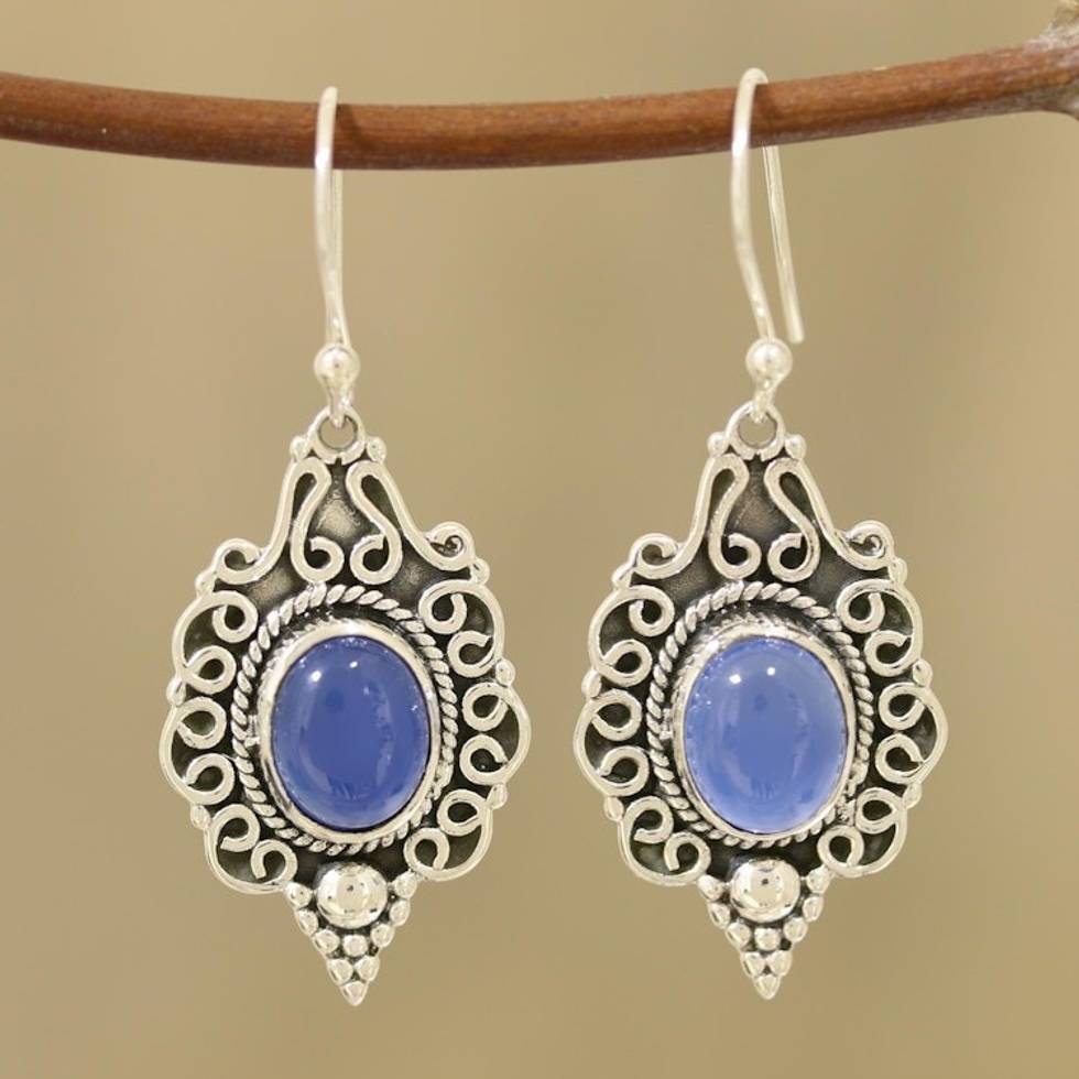 Blue Chalcedony Dangle Earrings Crafted in India 'Baroque Blue' Item ID: 2671789882
