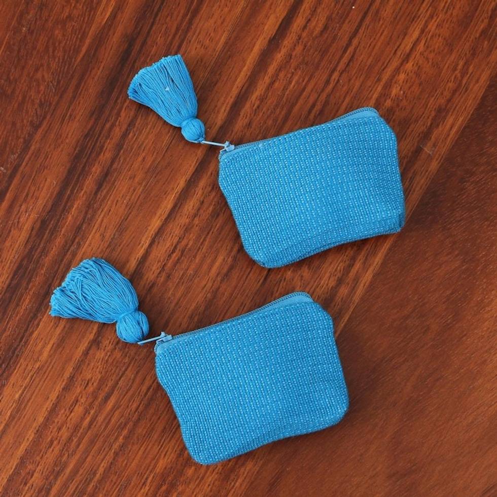 Blue Cotton Coin Purses in Blue from Mexico Pair 'Blue Cuties' Item ID: 2671808731