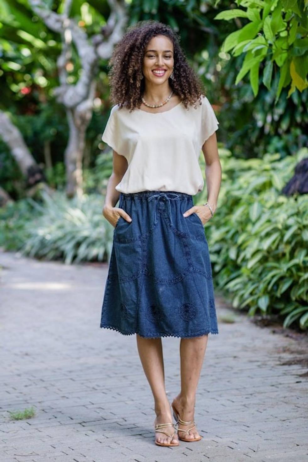 Blue Cotton Skirt with Lace Trim 'Journey Home' Item ID: 2671372700