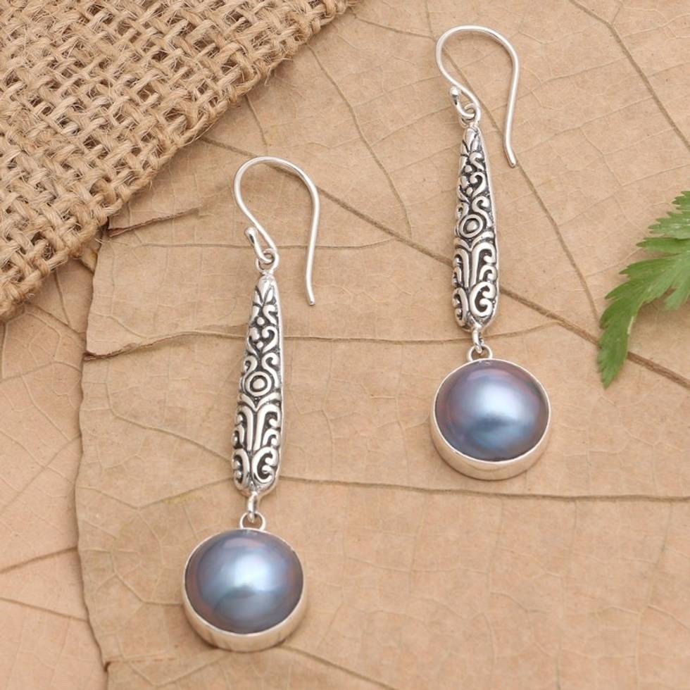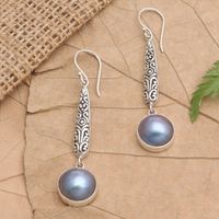 Blue Cultured Mabe Pearl Earrings 'Balinese Vision' Item ID: 2669923312