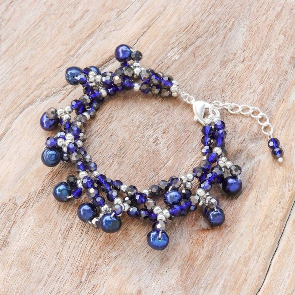 Blue Cultured Pearl Beaded Bracelet with Silver Accents 'Wonderful Blue' Item ID: 2671797399