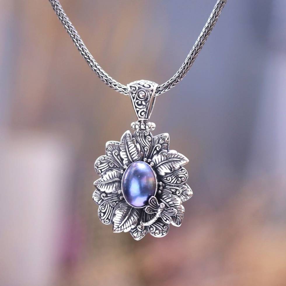 Blue Cultured Pearl Pendant Necklace from Bali 'Blue Nature of Bali' Item ID: 2671668083