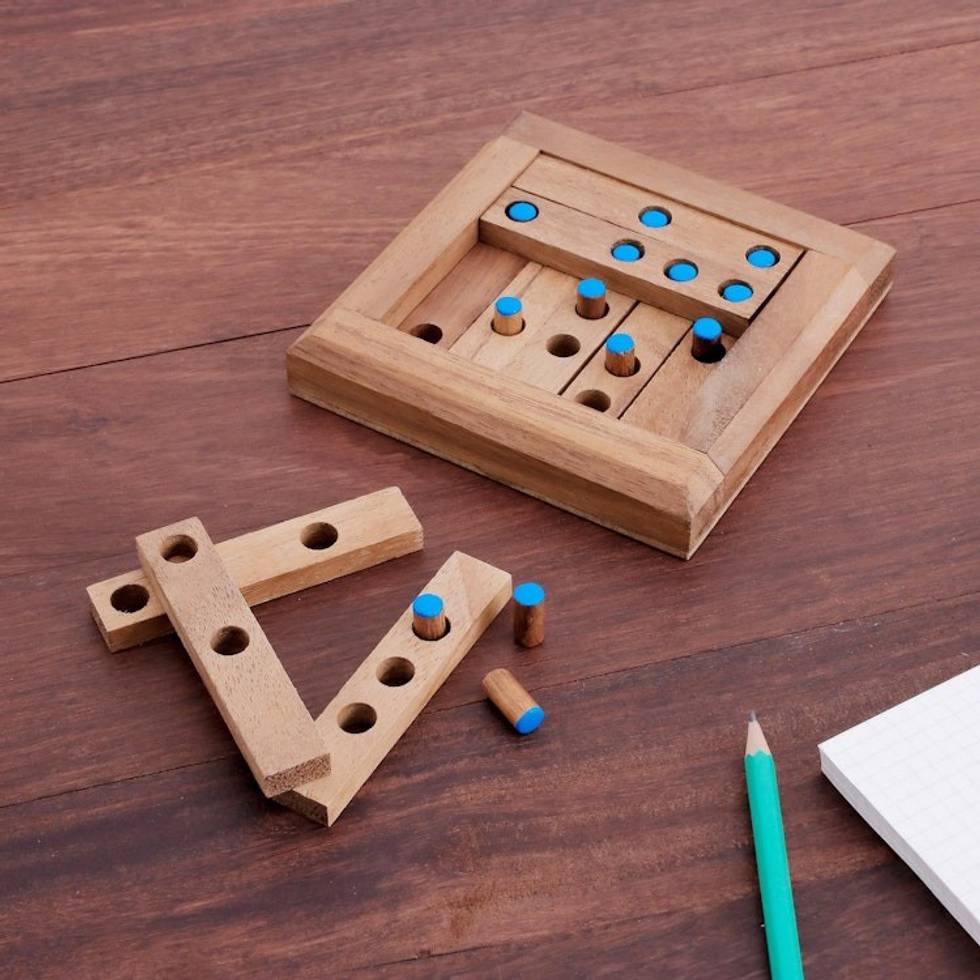 Blue Dot Raintree Wood Puzzle from Thailand 'Blue Dots' Item ID: 2669892477