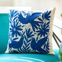 Blue Embroidered Mexican Manta Throw Pillow Cushion Cover 'Tenango in Blue' Item ID: 2669932450