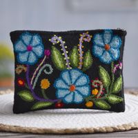 Blue Floral Embroidered Wool Clutch from Peru 'Floral Nature' Item ID: 2671695403