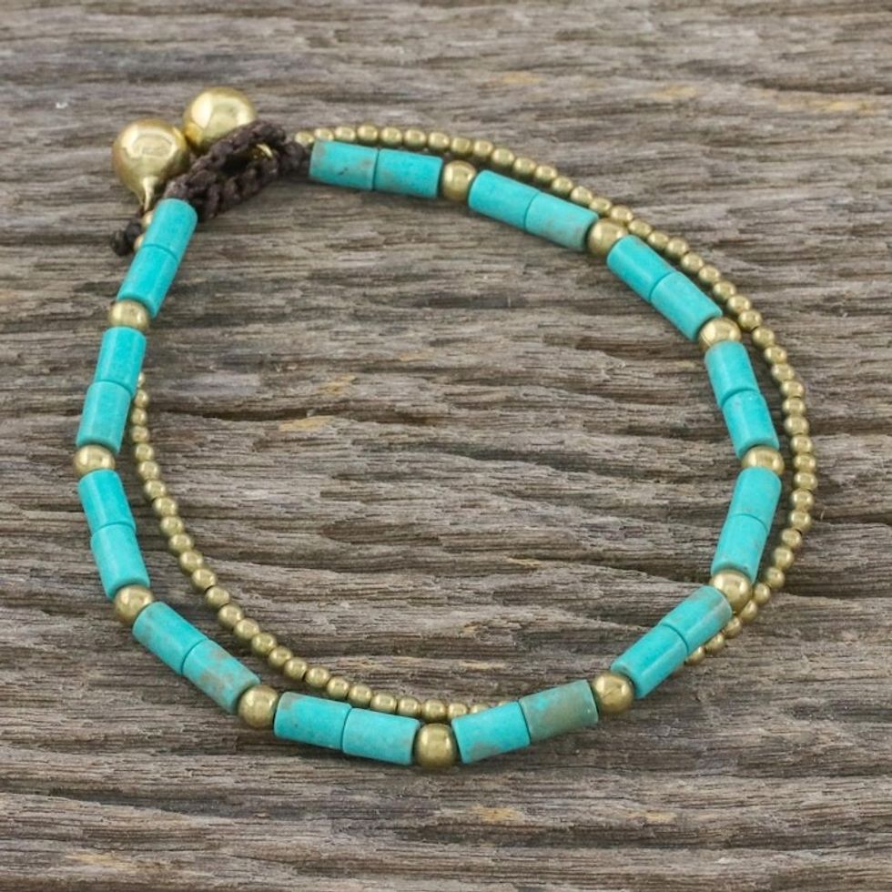 Blue-Green Calcite and Brass Double Stand Beaded Bracelet 'Calm Seas' Item ID: 2671800881