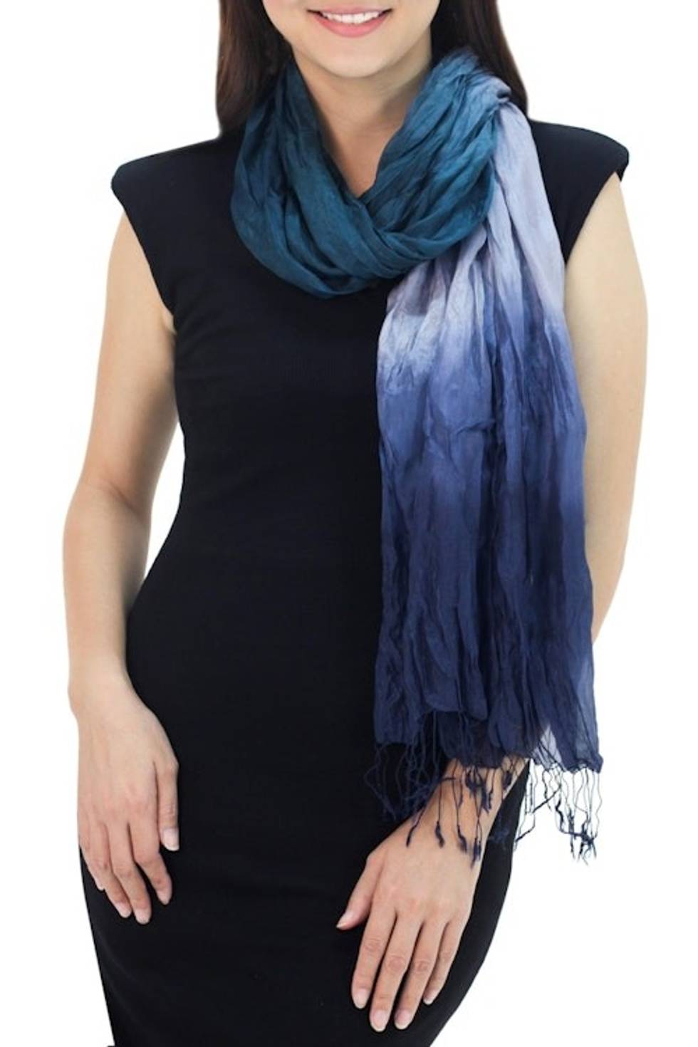 I've searched for a scarf such as this one for so many years and could barely believe my luck when I found it here. This is a beautiful piece of wearable art. I'm so incredibly grateful to the artisan for making such an airy, simple and elegant garment that effortlessly dresses up any outfit. It's one of those pieces that makes you look pulled together without trying too hard. It also will be great for summer to keep my neck from getting a chill in air conditioning.Make sure you gently hand wash before wearing as the cotton tends to shed a bit at first.