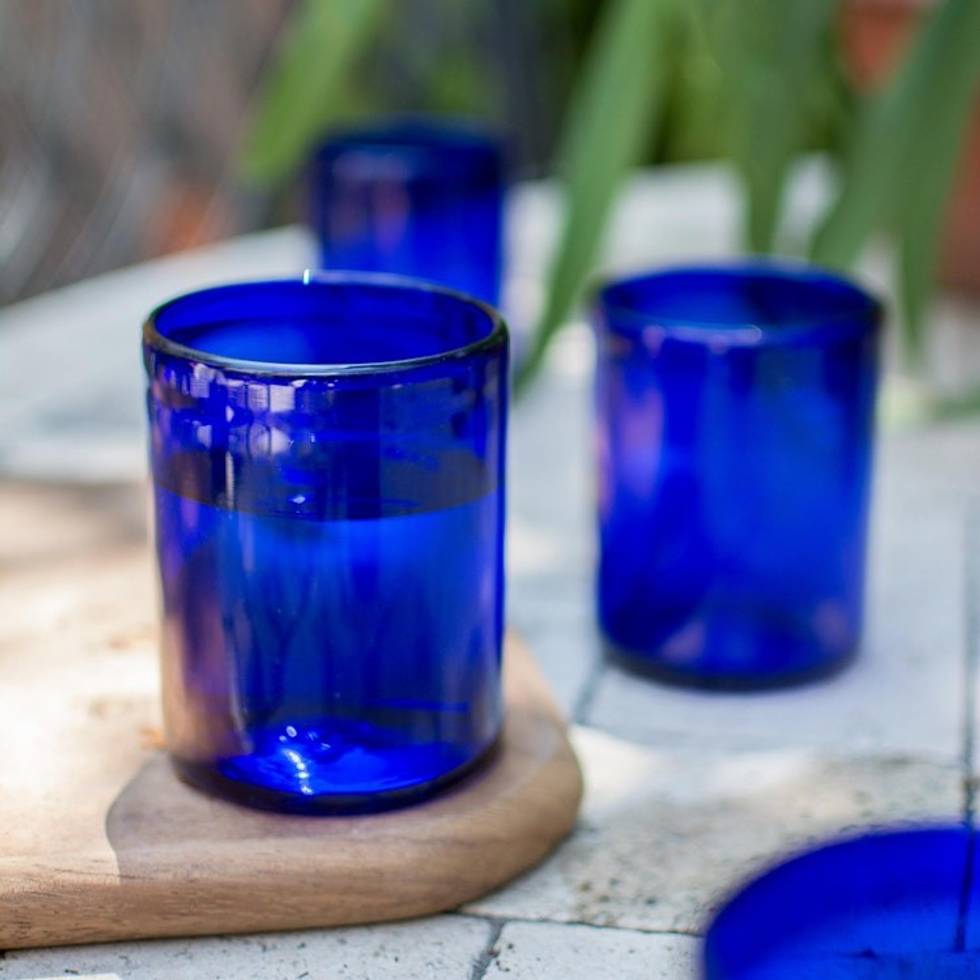Blue Hand Blown Glass Tumblers Set of 6 Mexico 'Pure Cobalt' Item ID: 2669897807