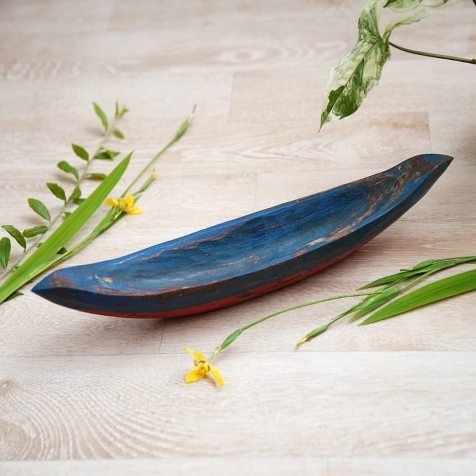 Blue Hand Carved Balinese Boat Theme Catchall 'Vintage Blue Canoe' Item ID: 2671702666