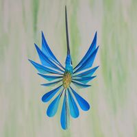 I have seen a great many works of art, and your hummingbirds are some of the prettiest. They make me smile each time I see them, and draw constant compliments. I have all four colors and would love to see more: maybe bright yellow, light blue, lilac, gray, copper? I have moved the wings so some have big feathers in front, others in back or in the middle. They hang from my office ceiling, all at different heights.Thank you for creating such beautiful things!
