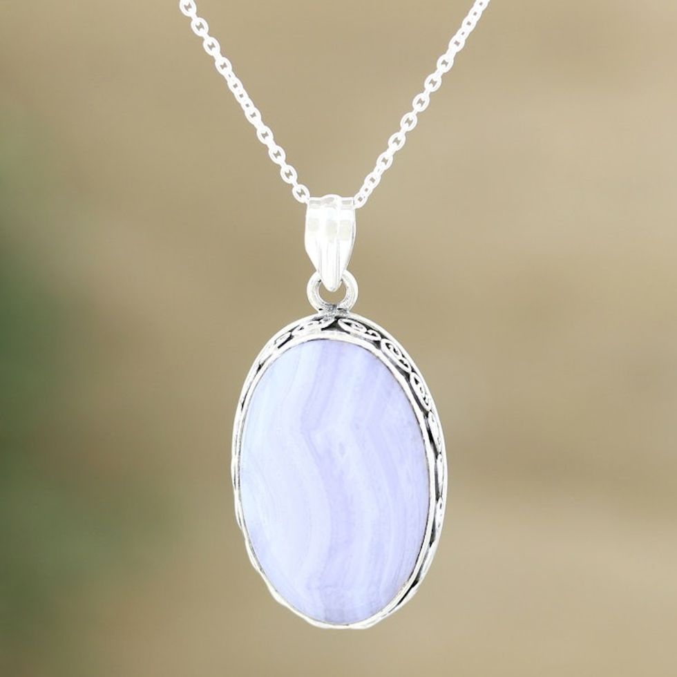 Blue Lace Agate and Sterling Silver Pendant Necklace 'Antique Lace' Item ID: 2671788374