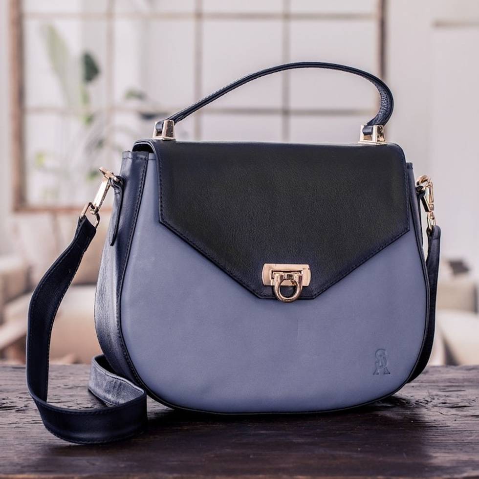 Blue Leather Sling Bag with Handle Removable Strap 'Blue Subtlety' Item ID: 2671771858