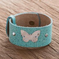 Blue Leather Wristband Bracelet with Butterfly 'Butterfly Medallion' Item ID: 2671776835