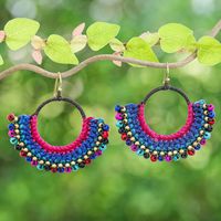 Blue Macrame Dangle Earrings with Colorful Magnesite Beads 'Oneiric Nimbus' Item ID: 2671797470