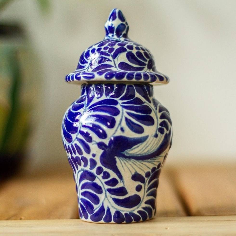 Blue on Ivory Swallow Motif Talavera Style Ginger Jar 'Blue Puebla Swallow' Item ID: 2671808417