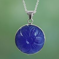 Blue Onyx and Sterling Silver Necklace from India 'Floral Grandeur' Item ID: 2671793485
