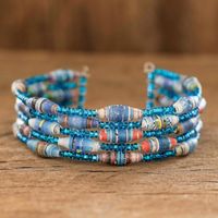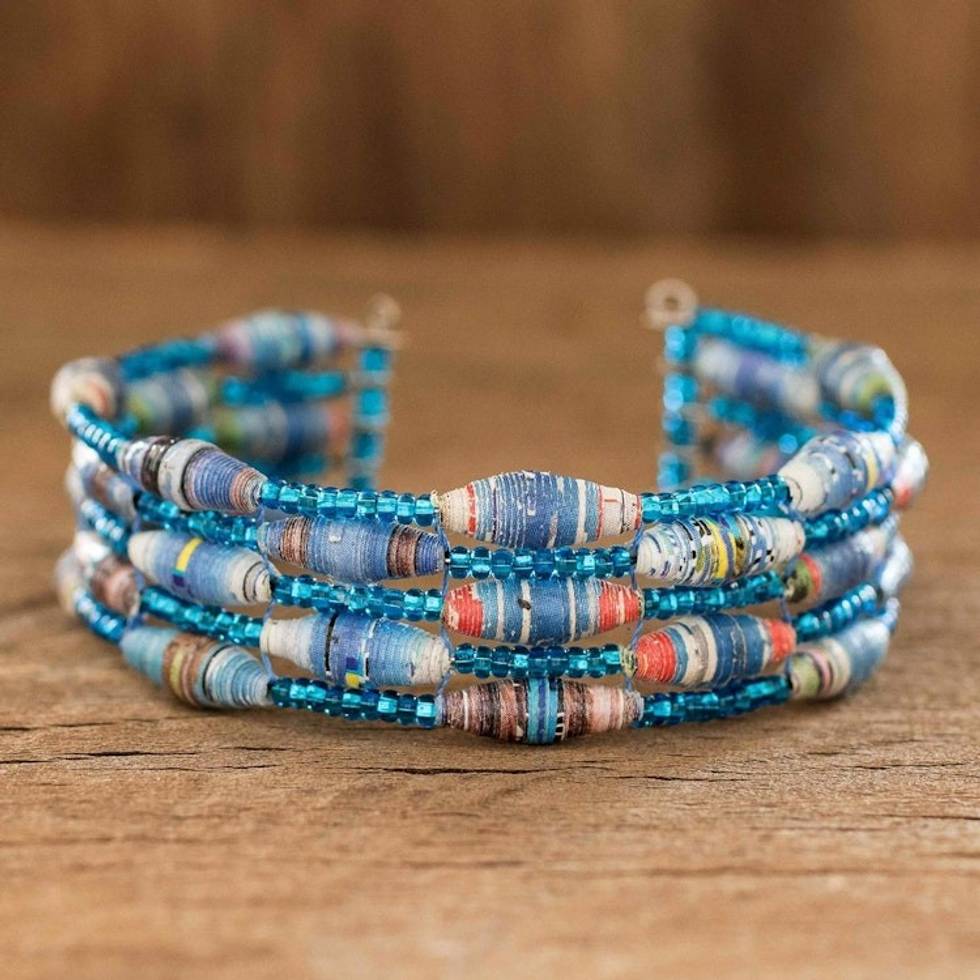 Blue Paper and Glass Bead Cuff Bracelet 'Nature of Life in Blue' Item ID: 2671626956