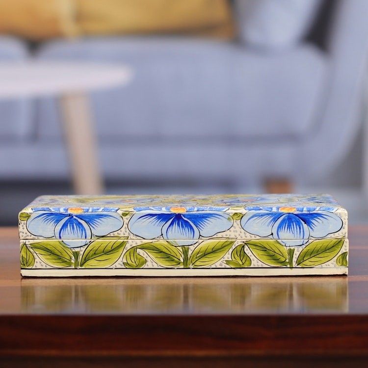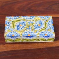 Blue Papier Mache on Wood Floral Leaf Bird Decorative Box 'Blooming Kashmir in Blue' Item ID: 2671782170