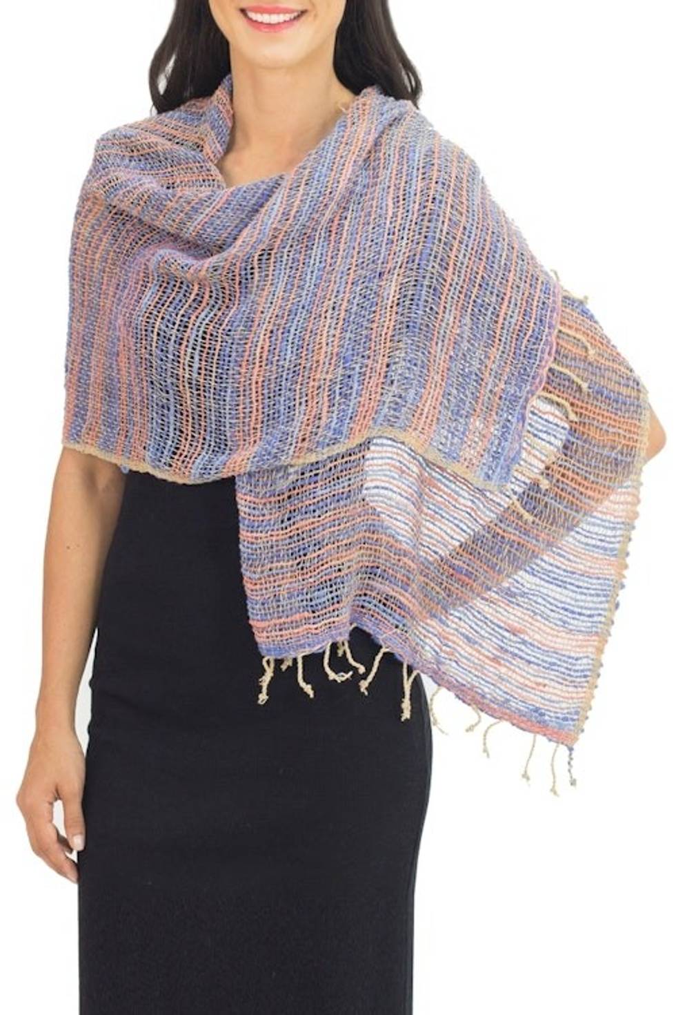 Blue Pink and Brown Hand Woven Cotton Shawl Thai Wrap 'Breeze of Blue Pink' Item ID: 2671802141