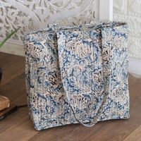Blue Quilted Cotton Tote Bag with Block-Printed Pattern 'Glorious Blue' Item ID: 2671788091