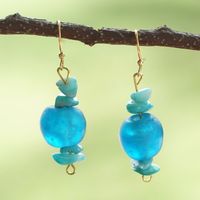 Blue Recycled Glass Beaded Dangle Earrings from Ghana 'Odobi Ye-Guy' Item ID: 2671804743