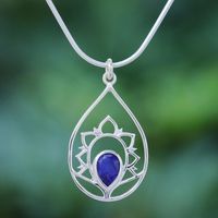 Blue Sillimanite and Sterling Silver Pendant Necklace 'Sense of Calm in Blue' Item ID: 2671800085